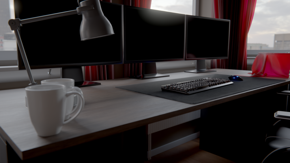 This is a 3D model I made based off my IRL desk.