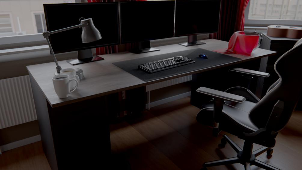 This is a 3D model I made based off my IRL desk.